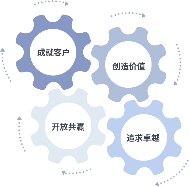 成就客户是一切决策的出发点,创造价值是衡量所有工作的标准,追求卓越是人生就是搏·尊龙z6做事做人的态度,开放共赢是人生就是搏·尊龙z6的格局也是最终的结果。价值观的齿轮环环相扣,推动着组织里的每个人不断向前。